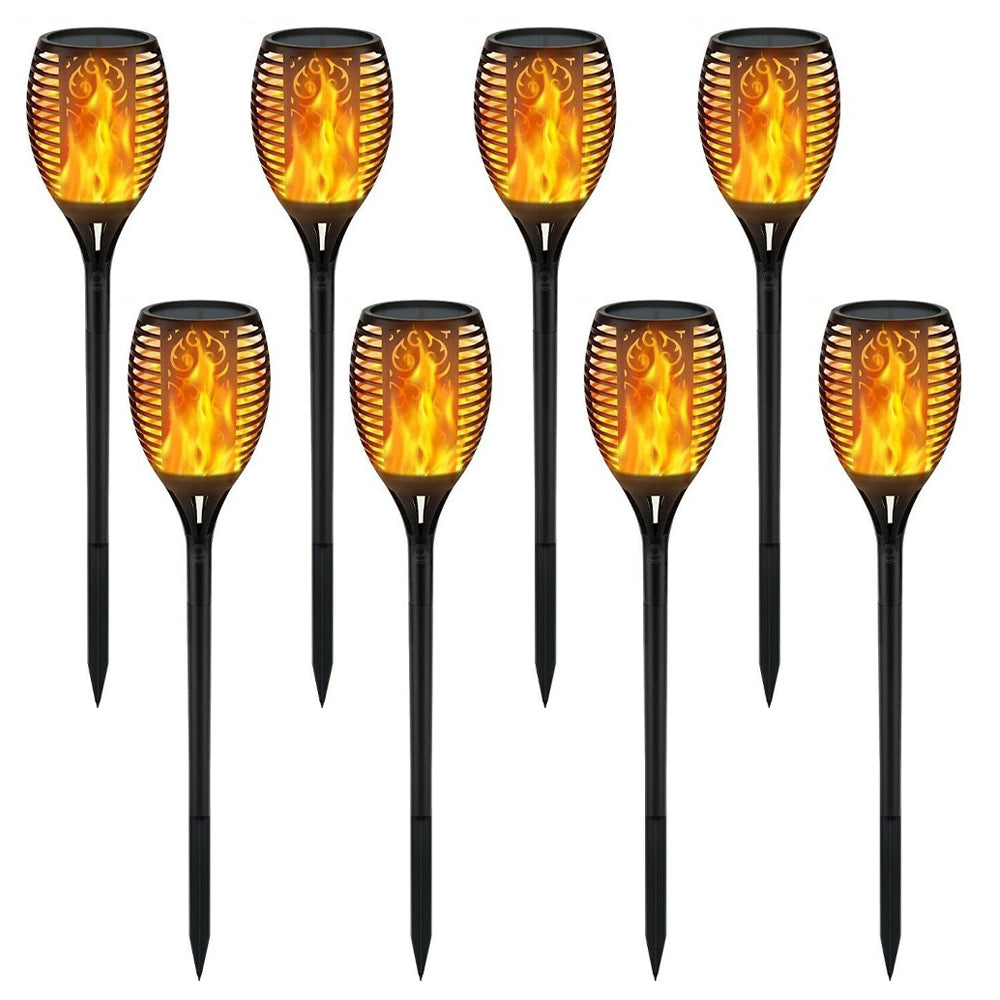 Add a warm and tropical ambiance to your outdoor spaces with these solar-powered torch flame lights. With 33 LEDs that simulate realistic flickering flames, these lights are a safe and stylish alternative to traditional tiki torches—perfect for gardens, pathways, patios, porches, and campsites.